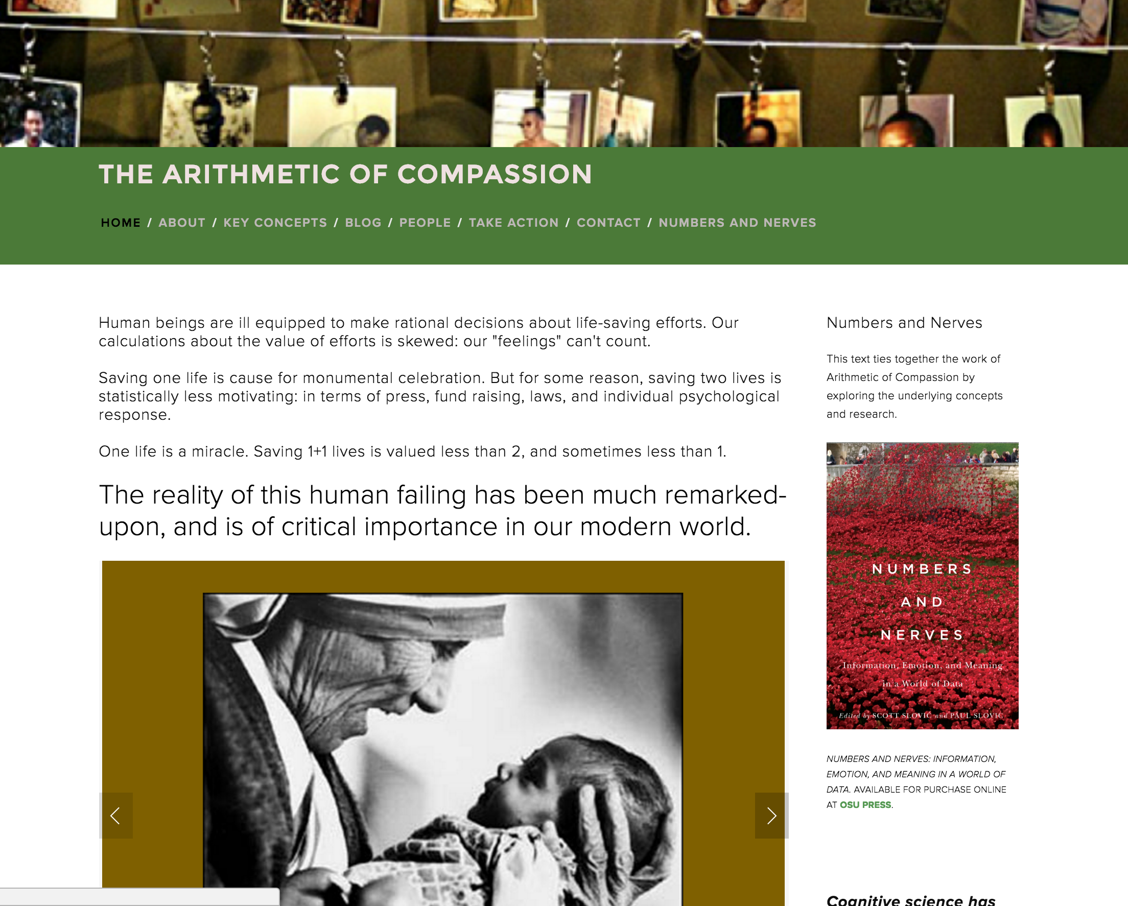 The Arithmetic of Compassion is a website to curate research in psychology, the social sciences, and the humanities which examines human failures of compassion and limitations to action in the face of genocide or other mass atrocities.